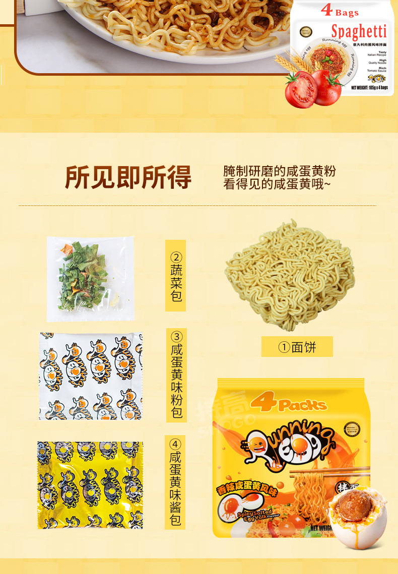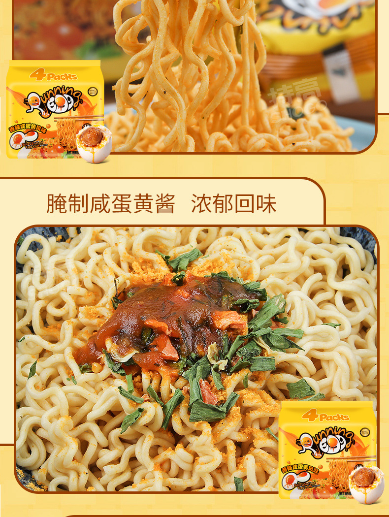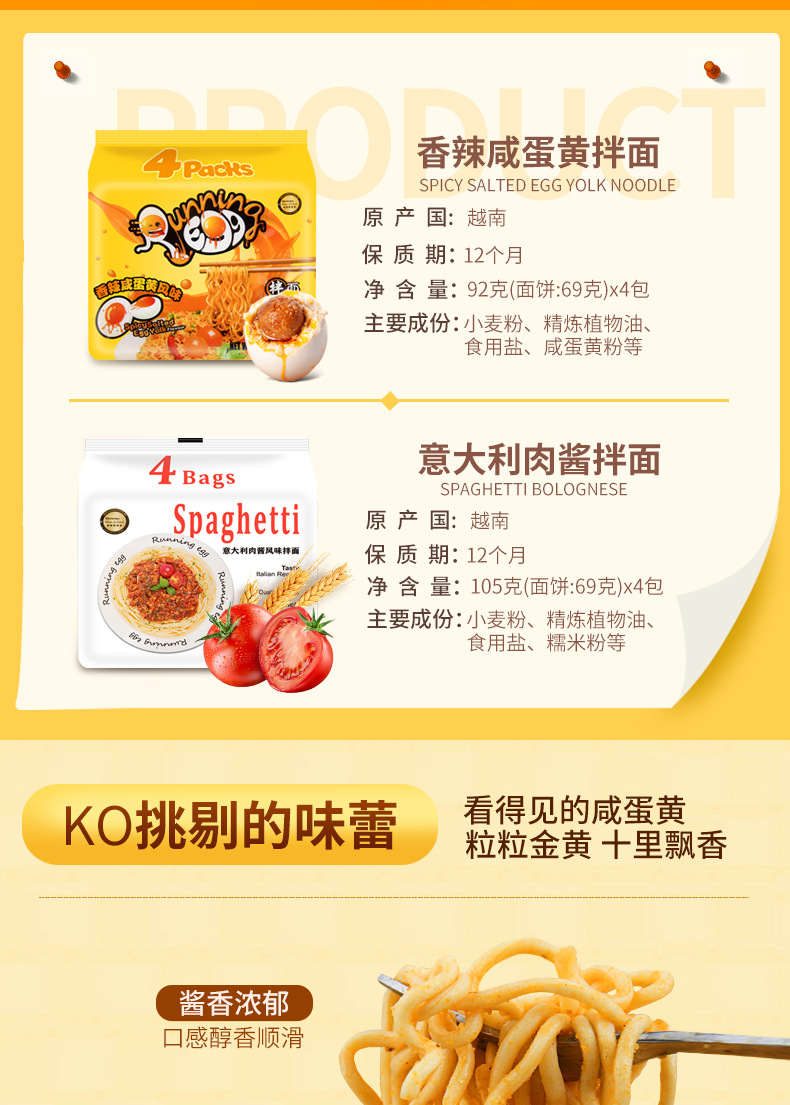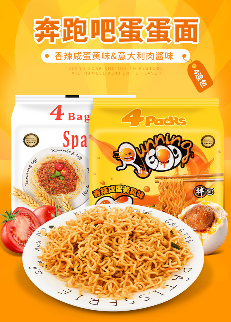 越南进口 奔跑吧蛋蛋 running egg香辣咸蛋黄干拌面袋装92g*4包