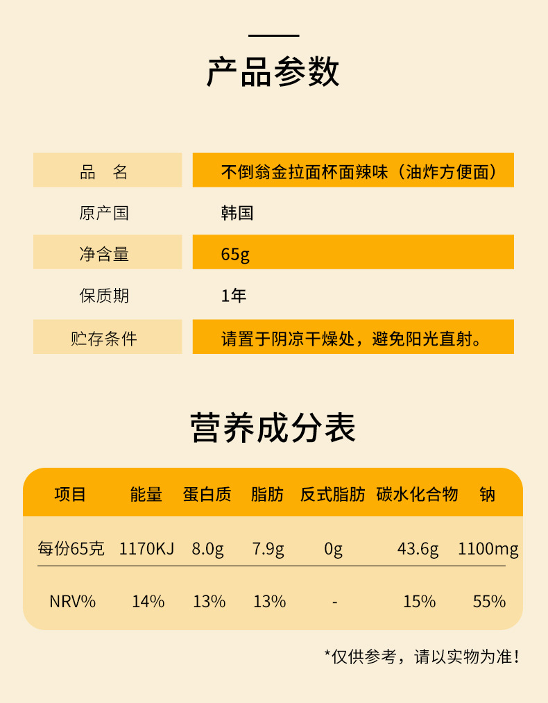 韩国进口不倒翁芝士拉面62g辣味金拉面方便面杯装泡面速食面桶装