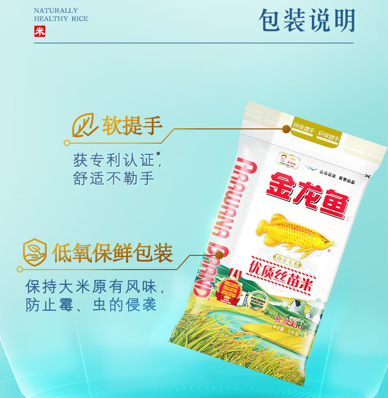 金龙鱼优质丝苗米5KG南方大米10斤装 一级丝滑爽口煮饭粥家用送礼