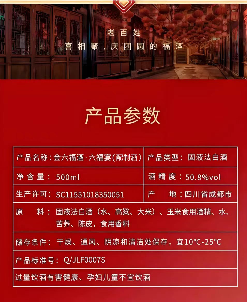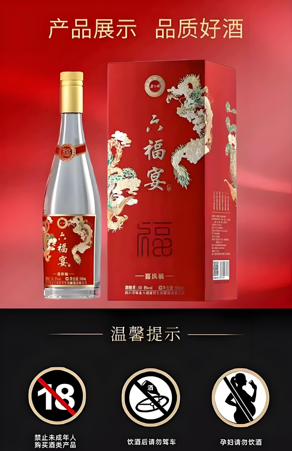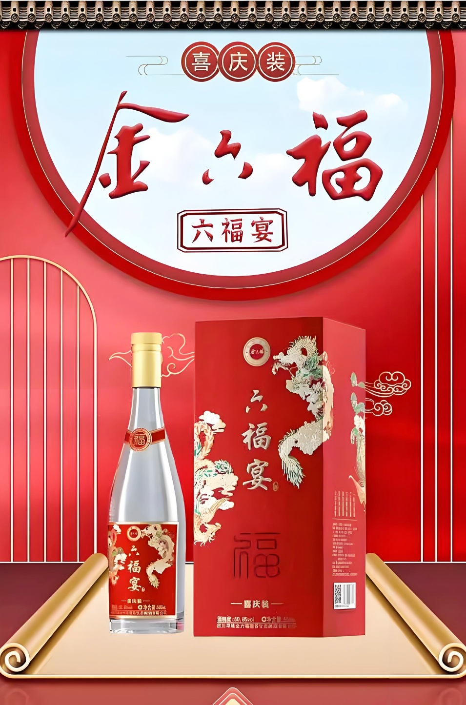 金六福六福宴喜庆装白酒50.8度整箱500ml*6瓶口粮酒特价优惠正品