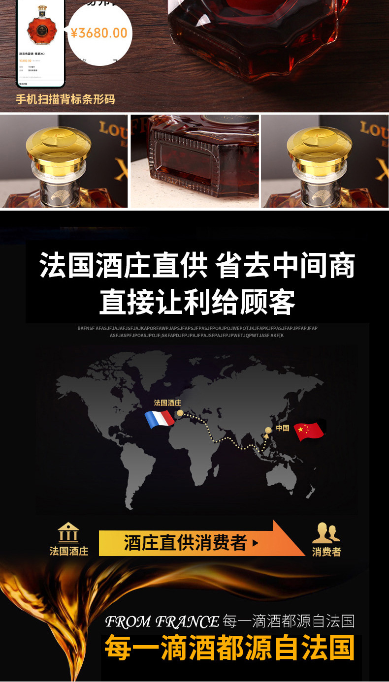 法国进口洋酒烈酒白兰地路易弗雷德产品洋酒礼盒装零售