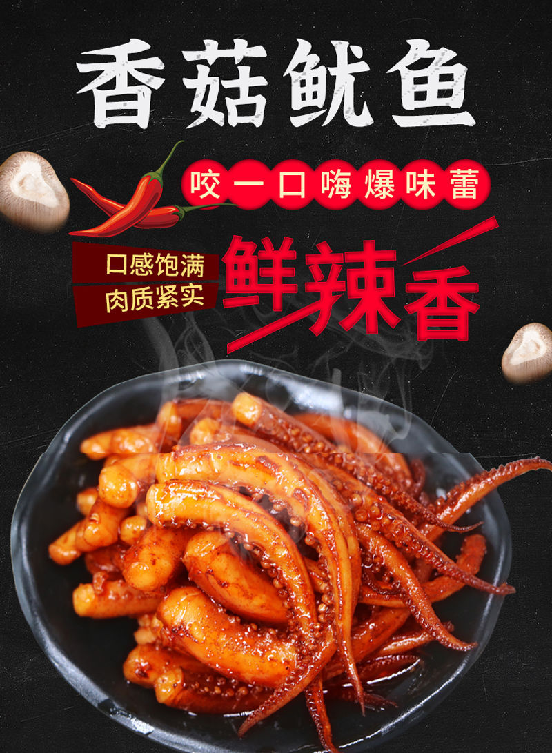 嗨汁源爆香鱿鱼香菇鱿鱼香辣烧烤味休闲网红零食小吃解馋熟食即食