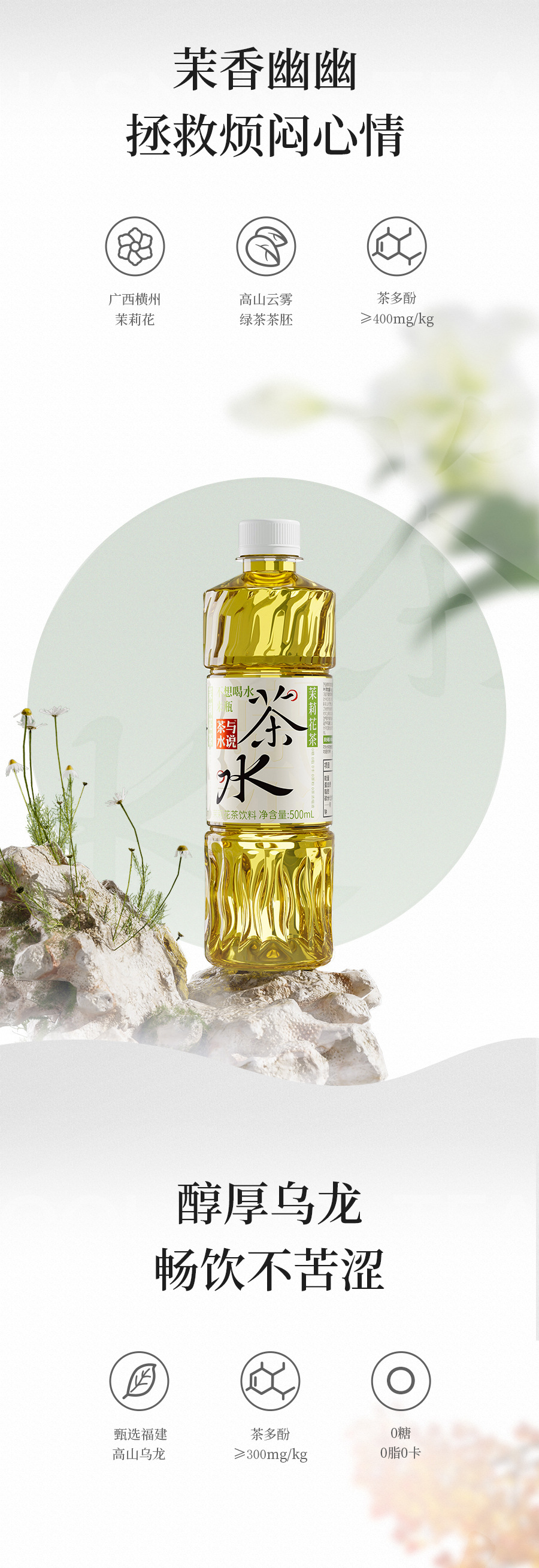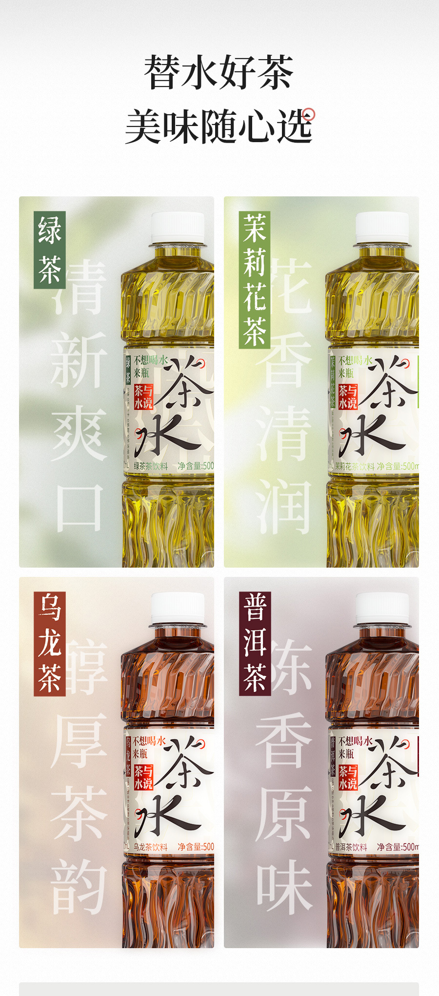 茶小开纯茶饮料500ml龙井凤凰单丛茉莉花茶无糖茶饮料饮品
