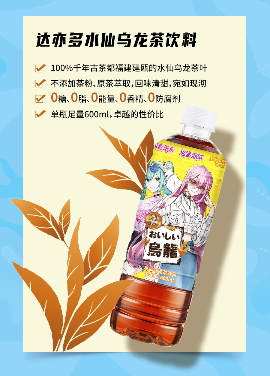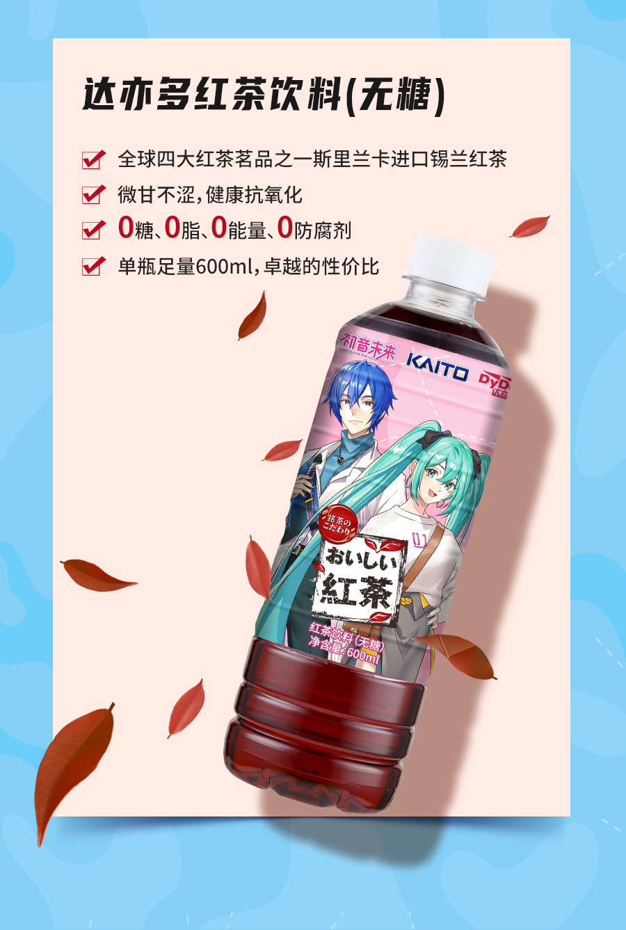 Dydo达亦多大麦茶无糖红茶饮料600ml初音未来联名款夏季饮品