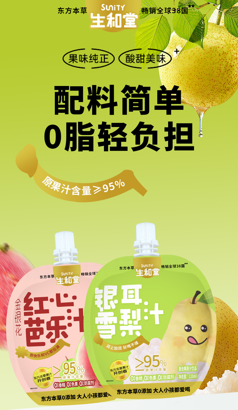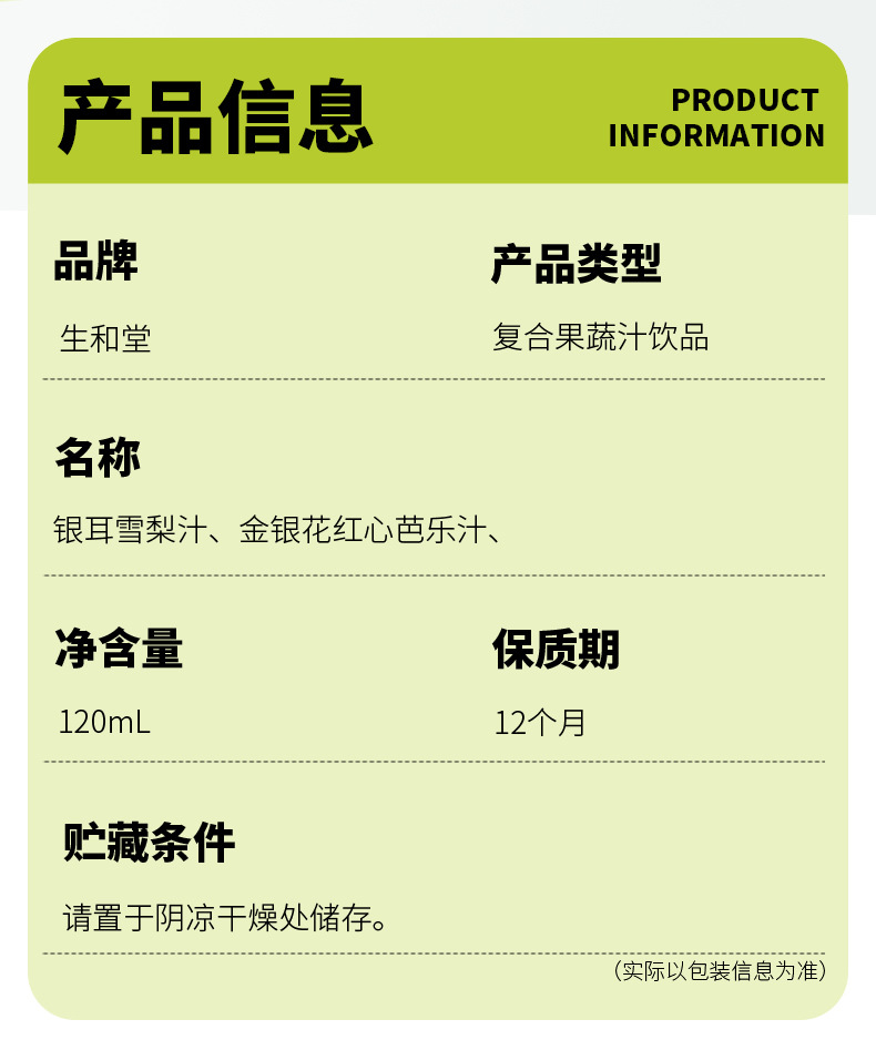 生和堂金银花红心芭乐汁 银耳雪梨汁120ml便携袋装果汁饮料饮品