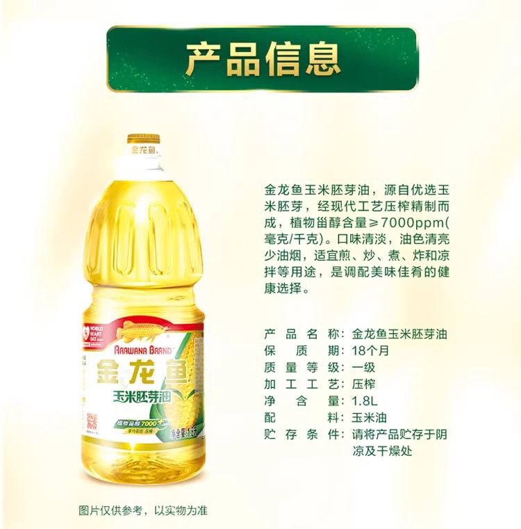 玉米油 1.8L/瓶 压榨胚芽食用油 玉米食用油 植物油 1.8L